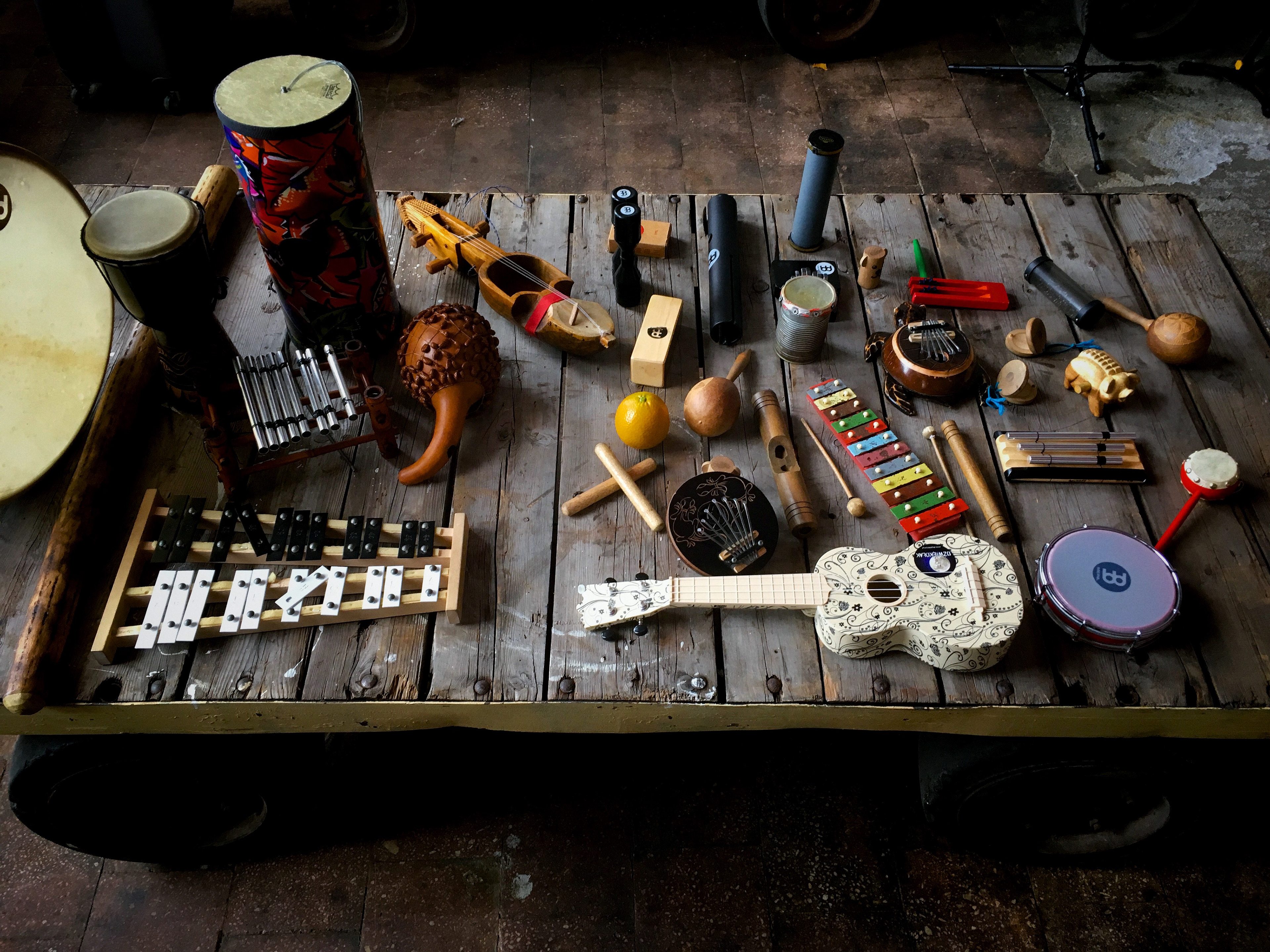Lifemusic™ sessions can be equally joyful, engaging and beneficial for participants who already enjoy music-making, and for those who had never even considered it before. The facilitator leads the group through a number of open-ended activities, often based on so called 'holding forms', involving a whole set of carefully selected instruments, 'magical objects' designed to foster creativity and connection.